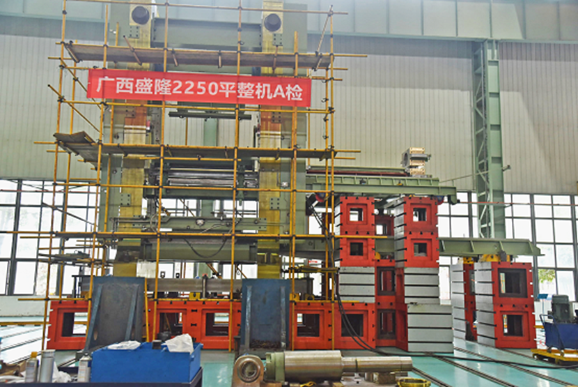 由賽迪裝備負責(zé)成套供貨的廣西盛隆2250平整機總重量達312噸,高7.5米、寬3.5米,最大軋制力為18000KN。該設(shè)備精度要求高,其中機架垂直度小于0.05mm/m,水平度小于0.05mm/m,機架間的水平度小于0.05mm/m,用于厚度為1.2mm-6.35mm,寬度為900mm-2130mm帶鋼的平整和分卷。