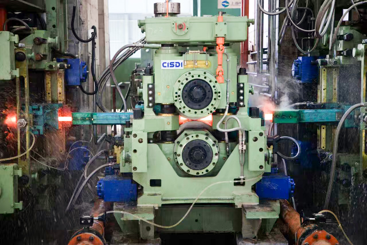 本項(xiàng)目軋機(jī)區(qū)核心設(shè)備采用中冶賽迪自主設(shè)計(jì)、制造、供貨的NHCD系列軋機(jī)與飛剪等設(shè)備。其中粗軋至預(yù)精軋共18架軋機(jī),整體采用短應(yīng)力線結(jié)構(gòu),平立交替布置,具有剛性大、穩(wěn)定性高、換輥效率高、軋輥軸承壽命長(zhǎng)等顯著優(yōu)勢(shì),可有效保障高強(qiáng)度、高精度型材的穩(wěn)定軋制。粗軋、中軋、預(yù)精軋機(jī)組間配合飛剪系統(tǒng),實(shí)現(xiàn)精準(zhǔn)切頭切尾,并采用微張力與活套無張力軋制相結(jié)合的先進(jìn)工藝,全線實(shí)現(xiàn)無扭軋制,大幅提升軋制穩(wěn)定性與產(chǎn)品尺寸精度。這些核心技術(shù)和裝備的運(yùn)用,將助力邢鋼在高端冷鐓鋼、高端軸承鋼、汽車彈簧鋼、非調(diào)鋼等產(chǎn)品的精度與性能上達(dá)到國際先進(jìn)水平,支撐邢鋼實(shí)現(xiàn)從 “鋼鐵制造”向“高端材料服務(wù)”的戰(zhàn)略轉(zhuǎn)型,為產(chǎn)線后續(xù)高效、高質(zhì)量運(yùn)行奠定了堅(jiān)實(shí)基礎(chǔ)。
